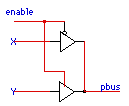 b. SIGNAL pbus : std_logic BUS; a1: BLOCK ( enable = '0' ) pbus <= guarded X after Tprop; END BLOCK a1; a2: BLOCK ( enable = '1' ) pbus <= guarded Y after Tprop; END BLOCK a2;