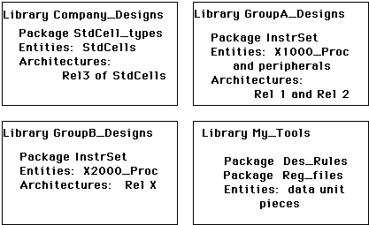 Within a VHDL description one may specify LOGICAL library names, which then can be used as part of an extended naming scheme.