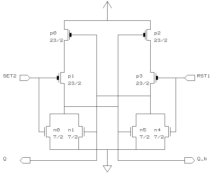 -------------------------------------------- Name X_loc Y_loc Capacitance (fF) lambda lambda 2U 1.2U 0.8U -------------------------------------------- Q 40 18 - - - Q_b 16 18 - - - RST1 49 20 72.2 35.9 23.3 SET2 7 20 72.2 35.9 23.3 --------------------------------------------