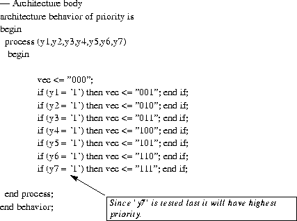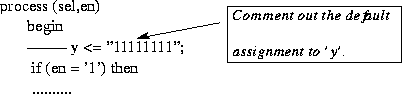 - Example: In dec3to8.vhd do not assign 'y' the default value of B"11111111". If en is 0,