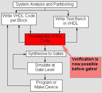 In practice it is common to spend 70-80% of the design cycle writing and simulating VHDL at and above the register transfer level, and 20-30% of the time synthesizing and verifying the gates.