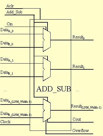 =H: OP = ADD =L: OP = SUB | Cannot be used it LPM_Direction property is used. If not connected, defaults value is ADD. | |||
