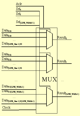 Note 1: The clock port provides for pipelined operation of the LPM_MUX. If a latency other 0 (default value) is specified, then the clock port must be connected.