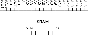 For the 32KB SRAM, the upper 7 memory address bits, [A8:A14] are connected to the Port 2 of the microcontroller, [P2.0:P2:6]. For the board that is populated with an 128 KB SRAM, the memory bits [A8:A15] are connected to Port 2, [P2.0:P2.7], while memory address bit A16 is connected to pin 16 of the FPGA. Port 2 is also connected to the FPGA so that it can decode the address. For a more complete description of the microcontroller connection, consult the XS40 user manual [1].* Only on the SC40+ board with 128KB SRAM