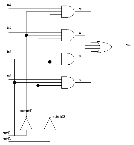 The example program will be a 4 to 1 multiplexor and will be implemented using three method, each a higher level of abstraction than the last.