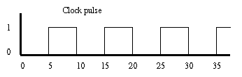This will make the clock flip every 5 time units giving a wave form as shown.