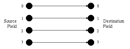 Each bit in the source coresponds to its equivalent bit in the destination. Source fields and destination fields must have the same number of bits, otherwise there is a mismatch.
