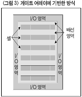 °ÔÀÌÆ® ¾î·¹ÀÌ¿¡ ±â¹ÝÇÏ´Â ¼³°è ¹æ½ÄÀº ĨÀ» ¼³°èÇÏ´Â ´Ü°è¿¡¼ °¢°¢ÀÇ ¼¿À» ¾î·¹ÀÌ ÇüÅ·Π¹èÄ¡Çϰí À̸¦ °øÁ¤ ¹× Á¦ÀÛ ´Ü°è¿¡¼ ¾î·¹ÀÌµé °£ÀÇ ¹è¼±¸¸ ¹Ù²ÞÀ¸·Î½á ¸ñÀûÇÏ´Â ±â´É¿¡ ¸Â°Ô µ¿ÀÛÇϵµ·Ï ȸ·Î¸¦ ±¸¼ºÇÏ´Â ¹æ½ÄÀÌ´Ù. Ç¥ÁØÇü ¼¿¿¡ ±â¹ÝÇÑ ¹æ½Ä°ú ºñ±³Çؼ ĨÀÇ Å©±â, I/OÀÇ À§Ä¡, ƯÈ÷ ¼¿µéÀÇ Á¾·ù¿Í À§Ä¡, ¸ð¾ç µîÀÌ °íÁ¤µÇ¾î ÀÖ´Ù´Â Â÷ÀÌÁ¡ÀÌ ÀÖ´Ù. »ç½Ç ÀÌ ¹æ½ÄÀº ¼³°è»óÀÇ Á¦¾àÀÌ ¸¹°í Ç¥ÁØ ¼¿ ¹æ½Äº¸´Ù ´õ Á¤ÇüȵǾî Àֱ⠶§¹®¿¡ ĨÀÇ ¸éÀûÀÌ ³¶ºñµÉ ¼ö ÀÖ´Ù´Â ¹®Á¦Á¡ÀÌ Àֱ⵵ ÇÏ´Ù.