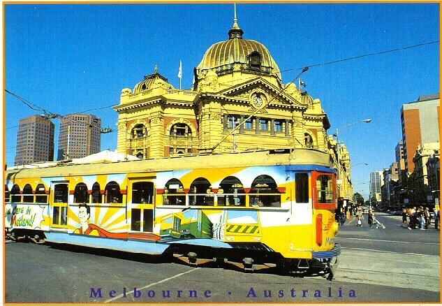 A Melbourne Tram at Flinders Street Station (Background) on the corner of Flinders and Swanston Streets