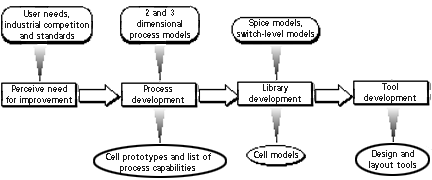 We now discuss process, library, and tool development in greater detail, referring to figure A.1.1.