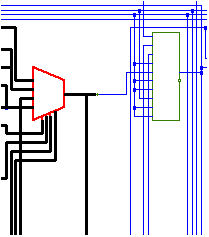Nextstate process builds an extra logic block, terminated with one selector element (red).
