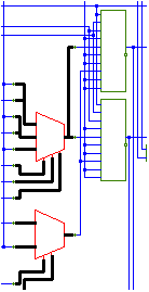 State process builds block with storing elements and "nextstate" logic, terminated with two selector elements (red).