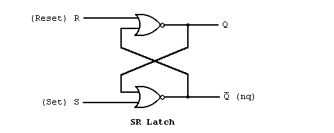 entity latch is port (s,r : in bit; q,nq : out bit); end latch; architecture dataflow of latch is begin q<=r nor nq; nq<=s nor q; end dataflow;note: If you are familiar with programming languages, notice that the <= symbol was chosen carefully to avoid confusion with the variable assignment operator (usually = or :=) of typical programming languages. The signal assignment operator in VHDL specifies a relationship between signals, not a transfer of data as in programming langauges.