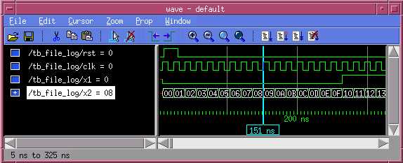 For the purpose of this example two signals x1 and x2 shall be logged to a file on every rising clock edge.