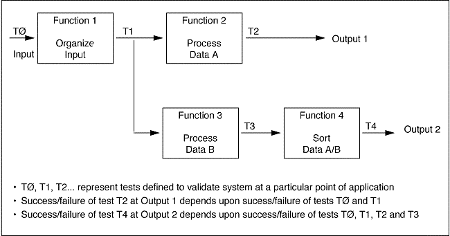 Dependency modeling is particularly useful in gaining insight into system testability very early in the design process, even at the concept phase, as soon as the functionality of the system has been defined. Figure 4-1 illustrates the concept of a Functional Block Diagram. and it also can continue to make significant contributions to the system development through architecture selection. A special feature of DM is that the model remains completely adaptable to the level of system information available at the time of the testability examination. More than one modeling exercise is likely as the system design continues to evolve.