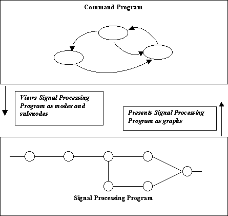 program provides a set of generic controls over the application graphs to the command program. Since this is a Commercial-off-the-shelf (COTS) interface to the CP, it contains no application specific information. Nor does it reveal anything about the specific set of graphs that compose an application or the specific set of parameters and queues that