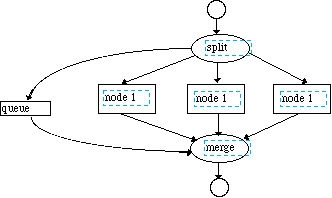 In the SAR example (see SAR Case Study) the split - merge pair was used to distribute the range processing data to each node. The graph also made use of the Family notation so the discussion of this graph will be deferred to Section 3.4.