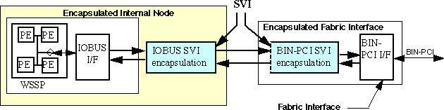 The SVI definition is designed to be general enough to handle different interprocessor communication paradigms. Some interconnect networks support a message passing paradigm to interprocessor communication, while others support a global shared memory paradigm. In some cases there is synchronous operation between the internal node and the interconnect fabric, while in other cases the internal node and the interconnect fabric operate asynchronously. The SVI is by definition synchronous; that is, each word of SVI data is transferred synchronously with the SVI clock. Support for asynchronous operation between an internal node and the fabric interface must be handled by the SVI encapsulation logic.