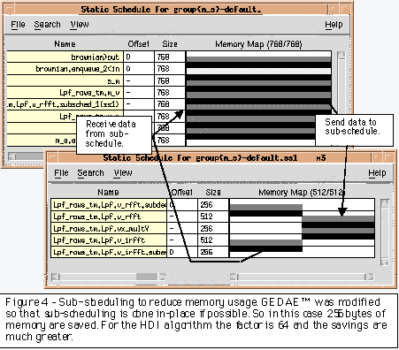 In accomplishing the BM4 HDI DFG development effort a number of key extensions were made to GEDAE, which enable more efficient memory utilization and execution. These included; the ability to manage and control the internal memory resources, the ability to schedule and subschedule functions in place reduce memory allocation, significant improvements in the scheduler which reduced both memory requirements and execution time, as well as primitives library corrections and extensions. All of these changes and extensions, as well as future improvements will continue to enhance GEDAE's capabilities and benefits for developing and implementing signal processing applications.