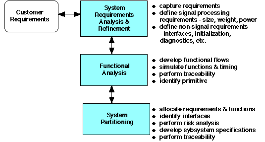 in conjunction with systems partitioning and continued requirement analysis. The result of
