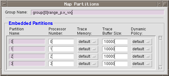 partitions mapped to separate processors.