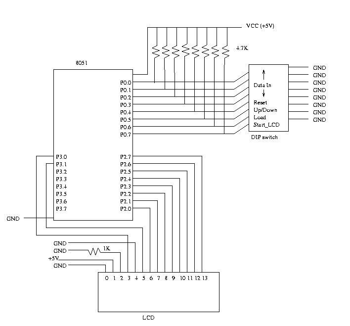 In this lab, you will learn how to write a simple C program for 80X51 micro-controller, compile it using C51 compiler, and emulate it on an emulator using PDS51. The program will be used to control a simple 4-bit up-down counter, capable of counting from 0 to 15. At each step the count should be displayed in decimal format on the LCD.