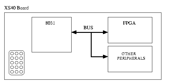 The basic idea is as follows: If you look at your XS40 board you have an 8031 and a FPGA connected to it. Connecting these entities you have a bus. Using the 8031 we can store the song (i.e. which notes to play and it's corresponding duration) in an array. We then indicate the note we want to play on the bus for the duration we want to play it. Therefore, if our song has a whole note corresponding to an A we know that we would send A to the FPGA using the bus. Then we would wait for 8 counts. The FPGA reads A from the bus into its internal register and plays that song until another note is writen to it.