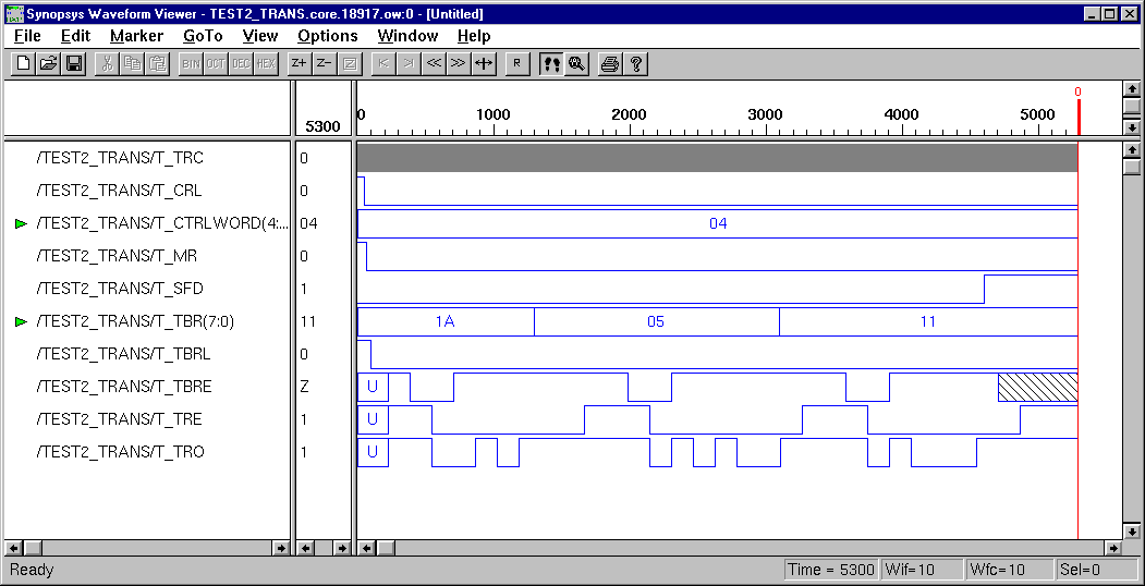 1 start, 1 stop, and odd parity, (Data=10111001, Control Word=11000). (