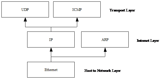 called the ARP layer, Ethernet layer and Internet layer respectively (this