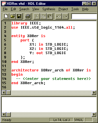 you would type "Y <= X1 xor X2;" The exact syntax and semicolon