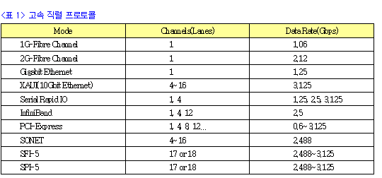 ÀÌ ¹Û¿¡ ¿©·¯ ¾ÖÇø®ÄÉÀ̼ǿ¡ ÀûÇÕÇϵµ·Ï Â÷µ¿ Ãâ·Â ½ÅÈ£¸¦ Á¶ÀýÇÒ ¼ö ÀÖÀ¸¸ç, ´Ù´Ü°èÀÇ Pre-emphasis ±â´Éµµ Á¦°øµÇ°í ÀÖ´Ù. <Ç¥ 1>Àº ¹ü¿ëÀûÀÎ SerDes¿¡¼ Áö¿øÇÏ´Â Á÷·Ä ÇÁ·ÎÅäÄÝ¿¡ ´ëÇØ¼ ³ªÅ¸³»¾ú´Ù.