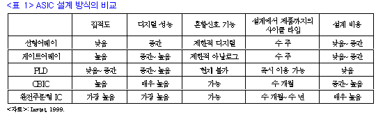 ¼¿±â¹Ý IC(CBIC), °ÔÀÌÆ®¾î·¹ÀÌ, PLD, ±×¸®°í ¿ÏÀüÁÖ¹®Çü IC·Î ºÐ·ùµÇ´Â ASIC ±â¼ú¿¡¼´Â ½Ã½ºÅÛÂ÷¿ø