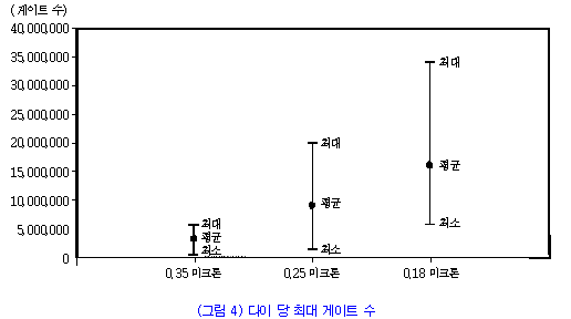 (±×¸² 2)´Â 0.35¹ÌÅ©·Ð, 0.25 ¹ÌÅ©·Ð, 0.18 ¹ÌÅ©·Ð °¢ ¼¼´ëÀÇ °ÔÀÌÆ® ±æÀÌÀÇ ¹üÀ§¸¦ º¸¿©ÁÖ°í ÀÖ´Ù.