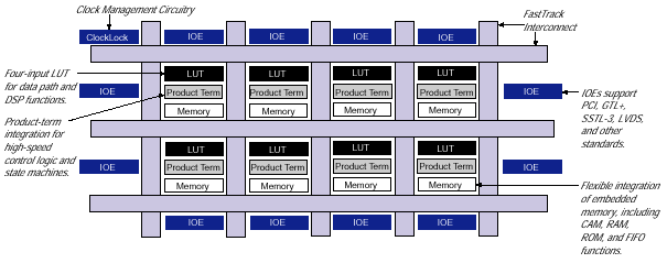 ÀÚÀϸµ½ºÀÇ ¹öÅØ½º¿Í ¾ËÅ×¶óÀÇ APEX·Î ´ëº°µÇ´Â ÀÌ ´ë¿ë·® FPGA´Â ±âÁ¸ ¾ÆÅ°ÅØÃ³¸¦ ±× ±â¹ÝÀ¸·Î Çϰí ÀÖÁö¸¸ 30¿©°³¿¡ ´ÞÇÏ´Â I/O Ç¥ÁØÀ» Áö¿øÇÏ°í »õ·Î¿î ÇüÅÂÀÇ ÀÓº£µðµå ºí·Ï°ú ´ë¿ë·® °ÔÀÌÆ® »çÀÌÁî ¹× ¸Þ¸ð¸®¸¦ ºñ·ÔÇØ ½Ã½ºÅÛ ·¹º§¿¡¼ ¿ä±¸µÇ´Â ´Ù¾çÇÑ ±â´É µîÀ» ¿ø Ĩ¿¡ ±¸ÇöÇÔÀ¸·Î½á PLD ±â¼úÀÇ »õ·Î¿î ½Ã´ë¸¦ ¿°í ÀÖ´Ù.