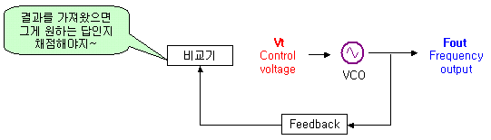 ¨ç VCO (Voltage Controlled Oscillator) ÀÔ·ÂÀü¾Ð¿¡ µû¶ó ƯÁ¤ÇÑ Á֯ļö¸¦ ³»º¸³»´Â PLLÀÇ ÃÖ°í Çٽɸâ¹ö. ÀÚ±â´Â º° »ý°¢ÀÌ ¾ø°í ±×³É µÚ¿¡¼ ´©°¡ Àü¾ÐÀ» ¹Ð¾îÁÖ¸é ¹¬¹¬È÷ ÇØ´ç Á֯ļö¸¦ ¹Ð¾î³½´Ù. ±×·±µ¥ ¿Âµµ³ª ÁÖº¯ÀüÀÚÆÄȯ°æ µî ÁÖº¯¿µÇâ¿¡ ¹Î°¨ÇÑ Á¤¼ºÒ¾ÈÀû ¼º°ÝÀ» °®°í Àֱ⠶§¹®¿¡ PLL°°Àº º¹ÀâÇÑ ±¸Á¶¸¦ ¸¸µé°Ô ¸¸µå´Â ÁÖÀΰø.